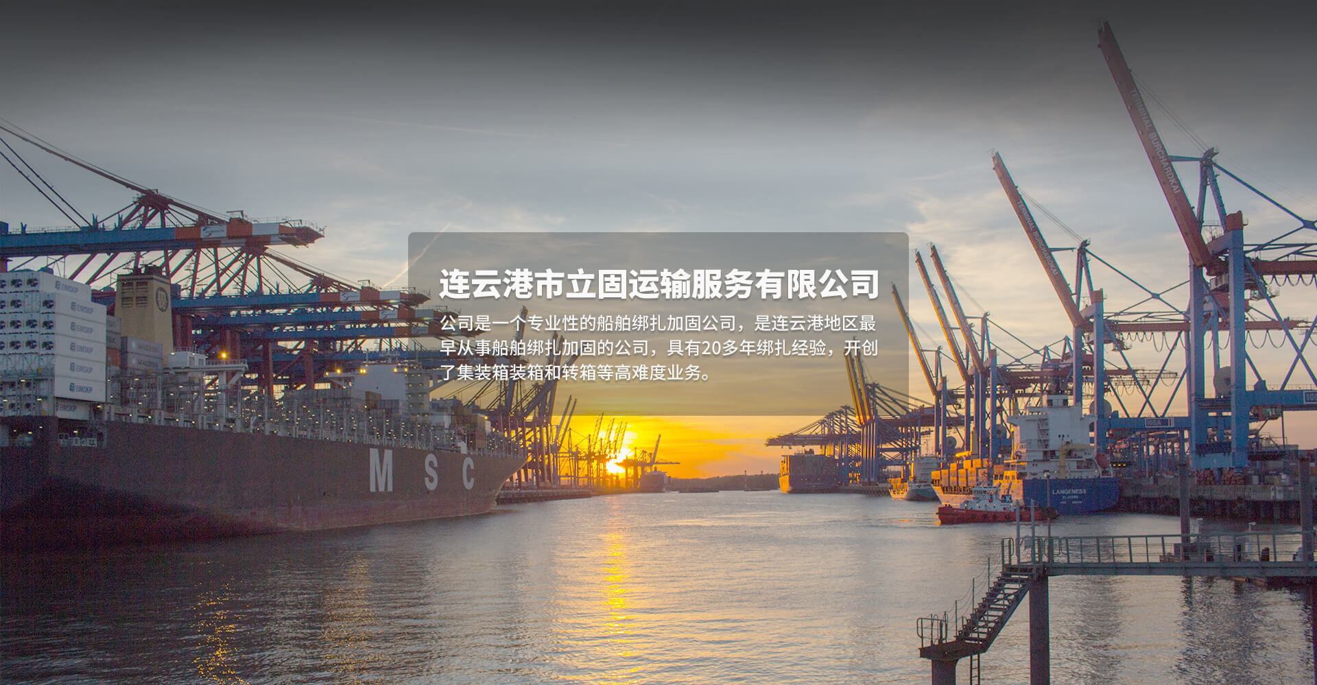 連云港市立固運(yùn)輸服務(wù)有限公司成立于1997年,是集生產(chǎn)、銷售于一體的實(shí)體型企業(yè),主要經(jīng)營(yíng)范圍包括國(guó)內(nèi)外船舶貨物綁扎加固,船舶物料供應(yīng)與回收;專業(yè)加工生產(chǎn)各類型的木托盤、木制包裝箱、免熏蒸膠合板木托盤,膠合板木箱等,并為客戶設(shè)計(jì)定制、安裝服務(wù)。